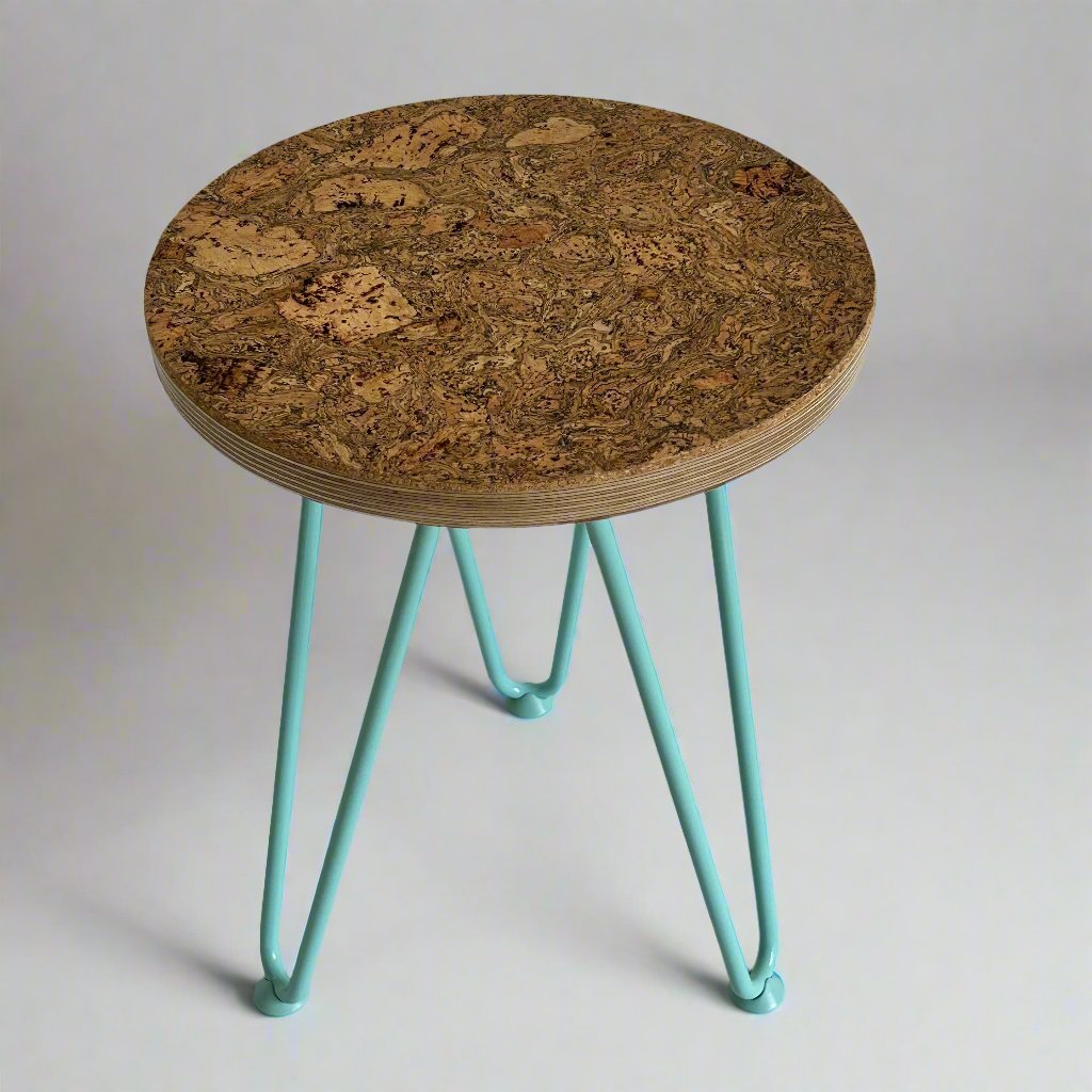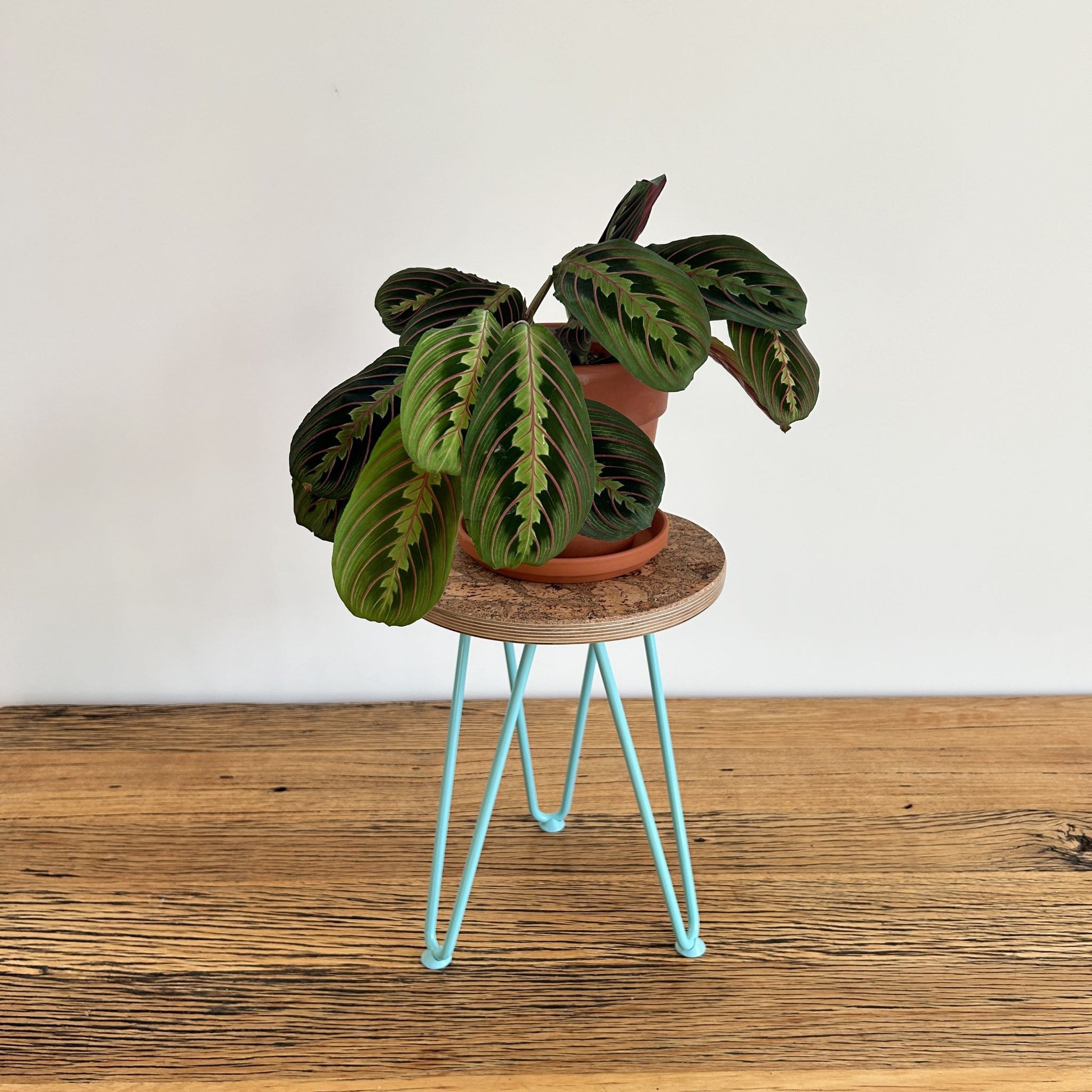 Mix and match from my range of beautiful decorative cork surfaces and boldly coloured metal hairpin legs and create your own unique plant stands. My cork finishes are sustainable, durable and stain resistant. They are applied to stylish oiled Birch plywood tops mounted on colourful hairpin legs. Whether you want them to complement or clash with your home décor, they will show off your prized plants dazzlingly.
