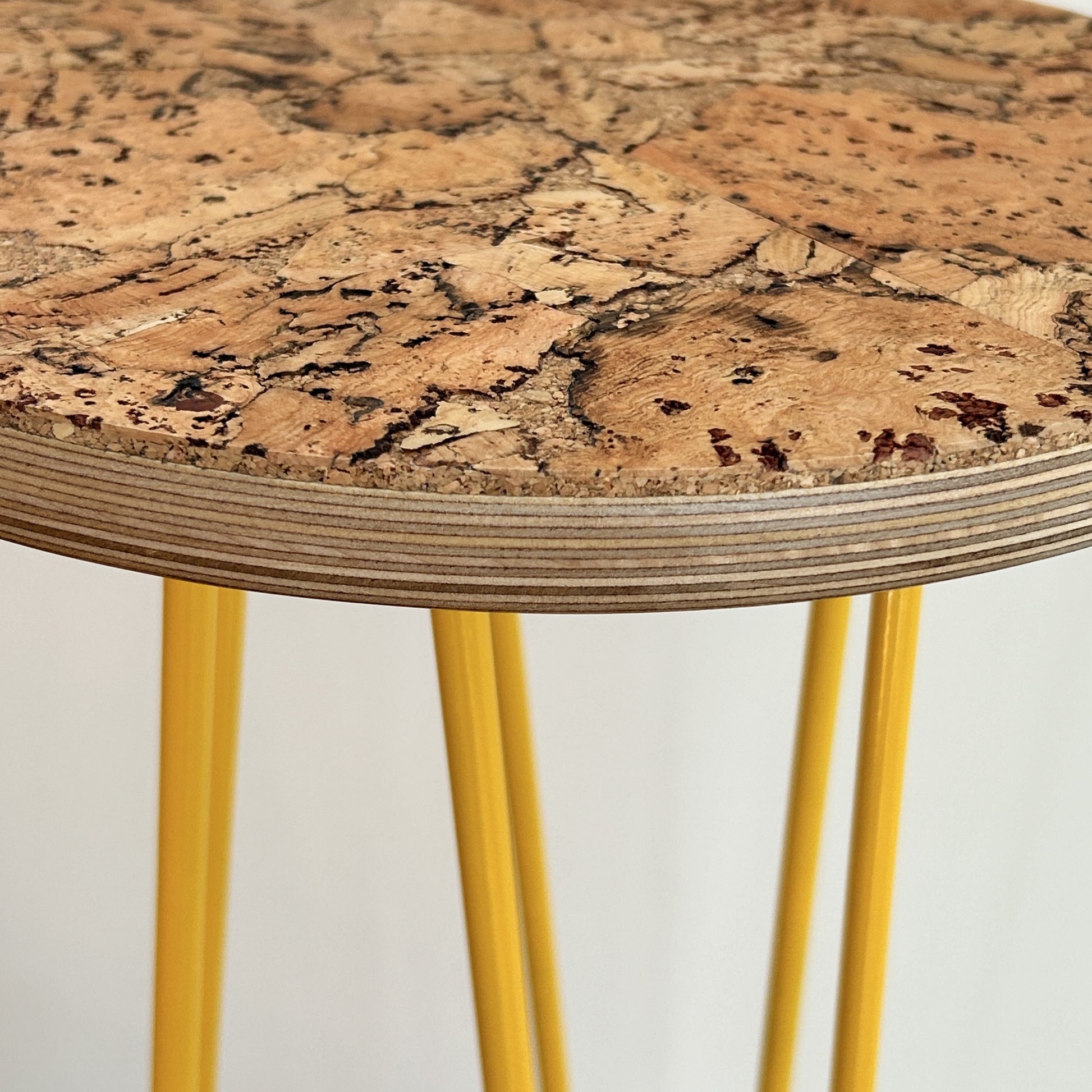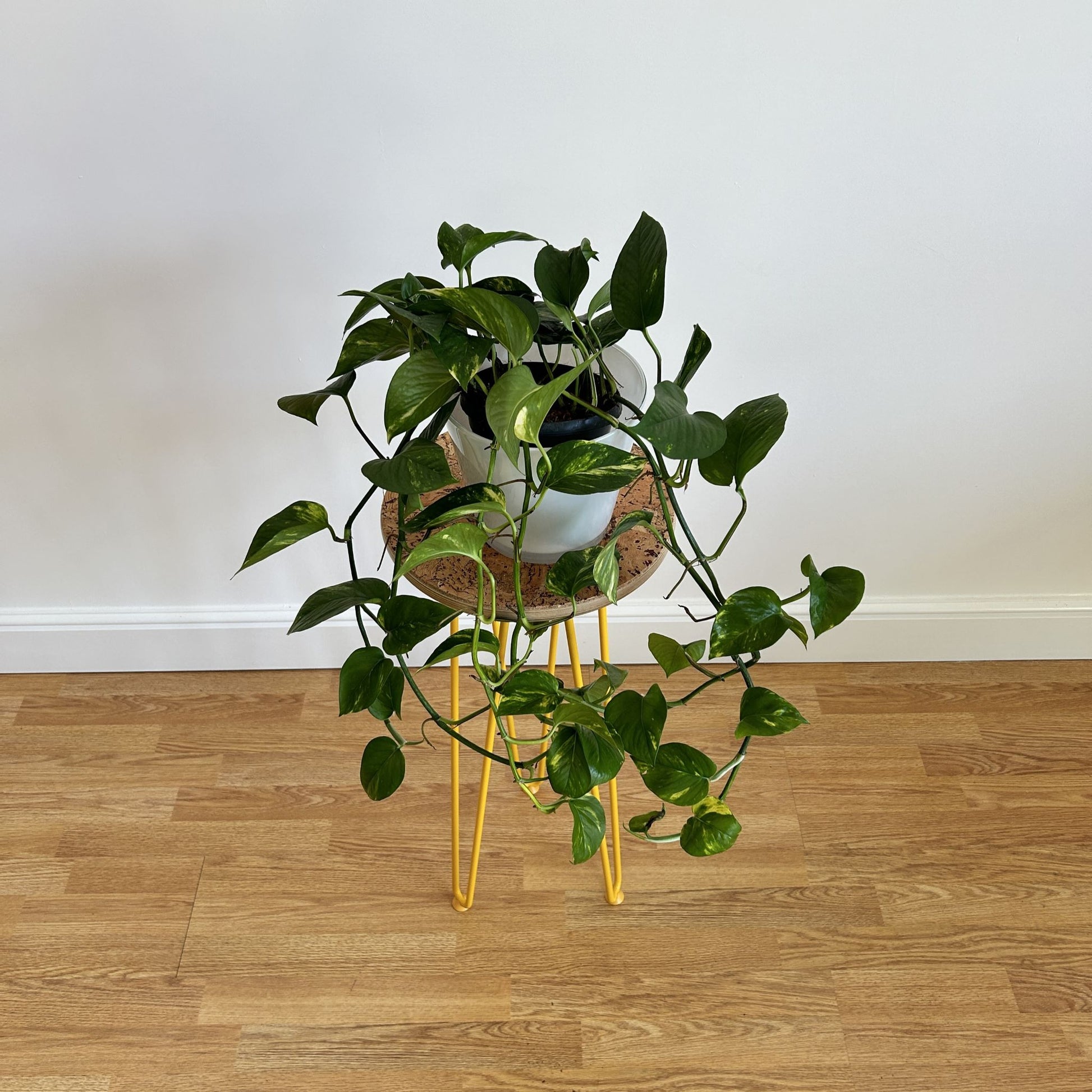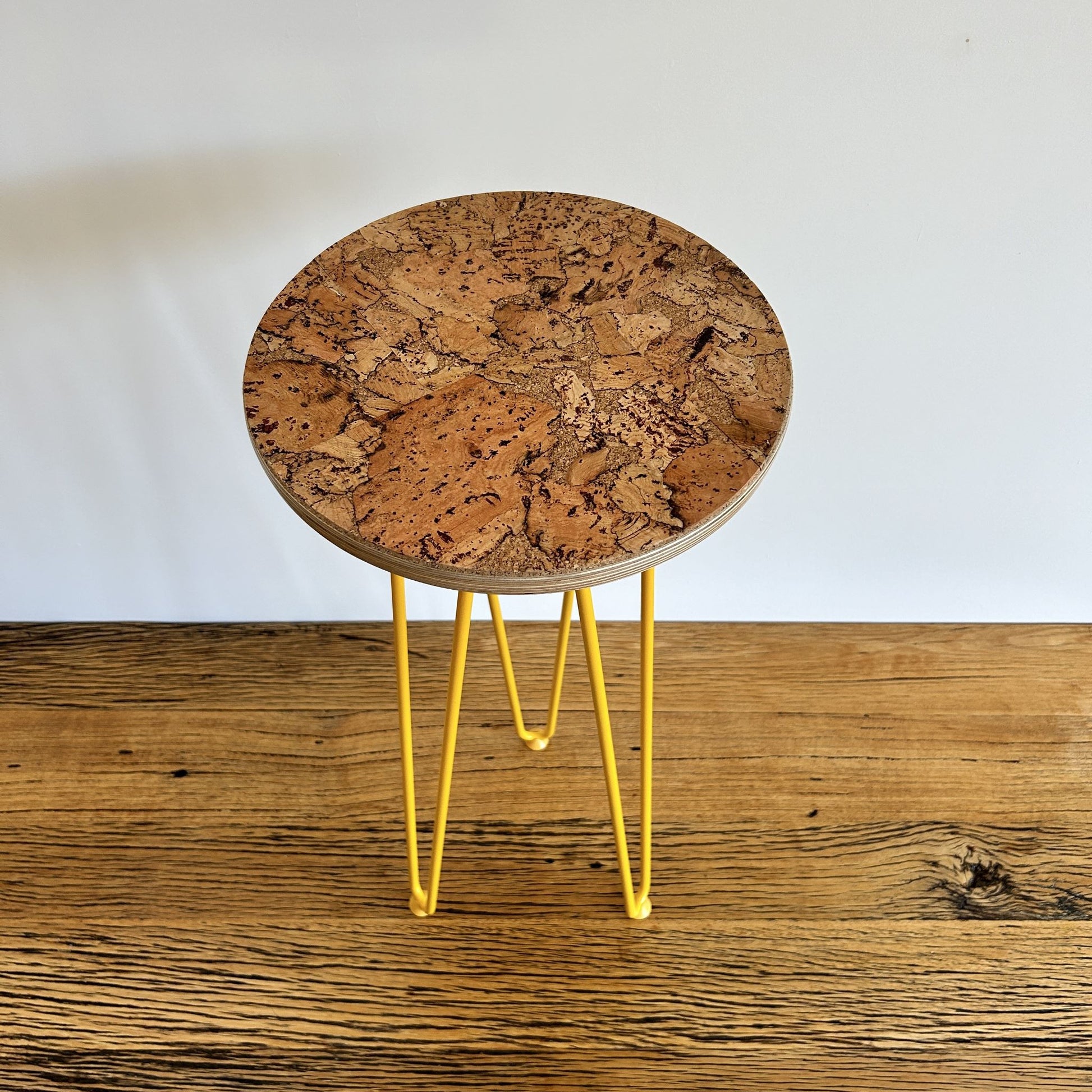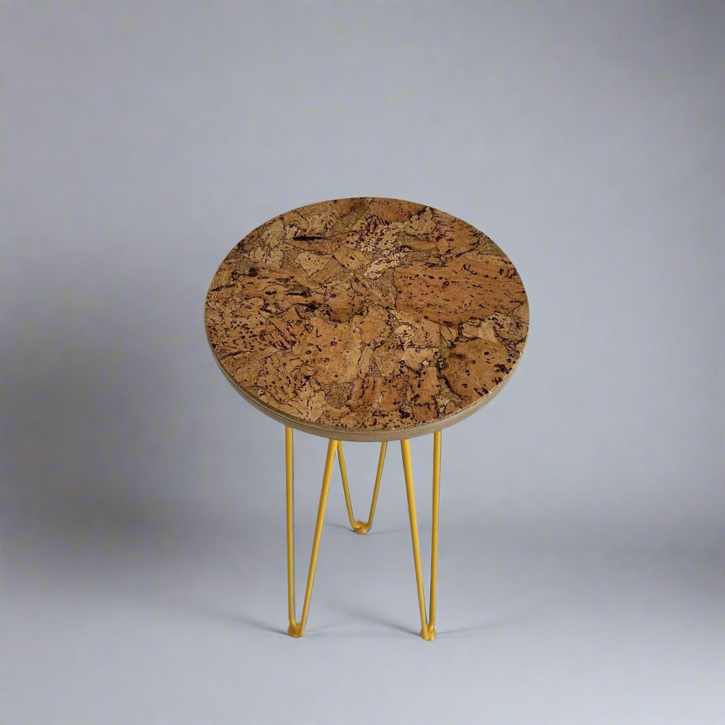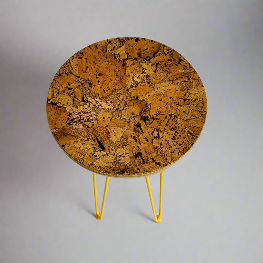 Mix and match from my range of beautiful decorative cork surfaces and boldly coloured metal hairpin legs and create your own unique plant stands. My cork finishes are sustainable, durable and stain resistant. They are applied to stylish oiled Birch plywood tops mounted on colourful hairpin legs. Whether you want them to complement or clash with your home décor, they will show off your prized plants dazzlingly.