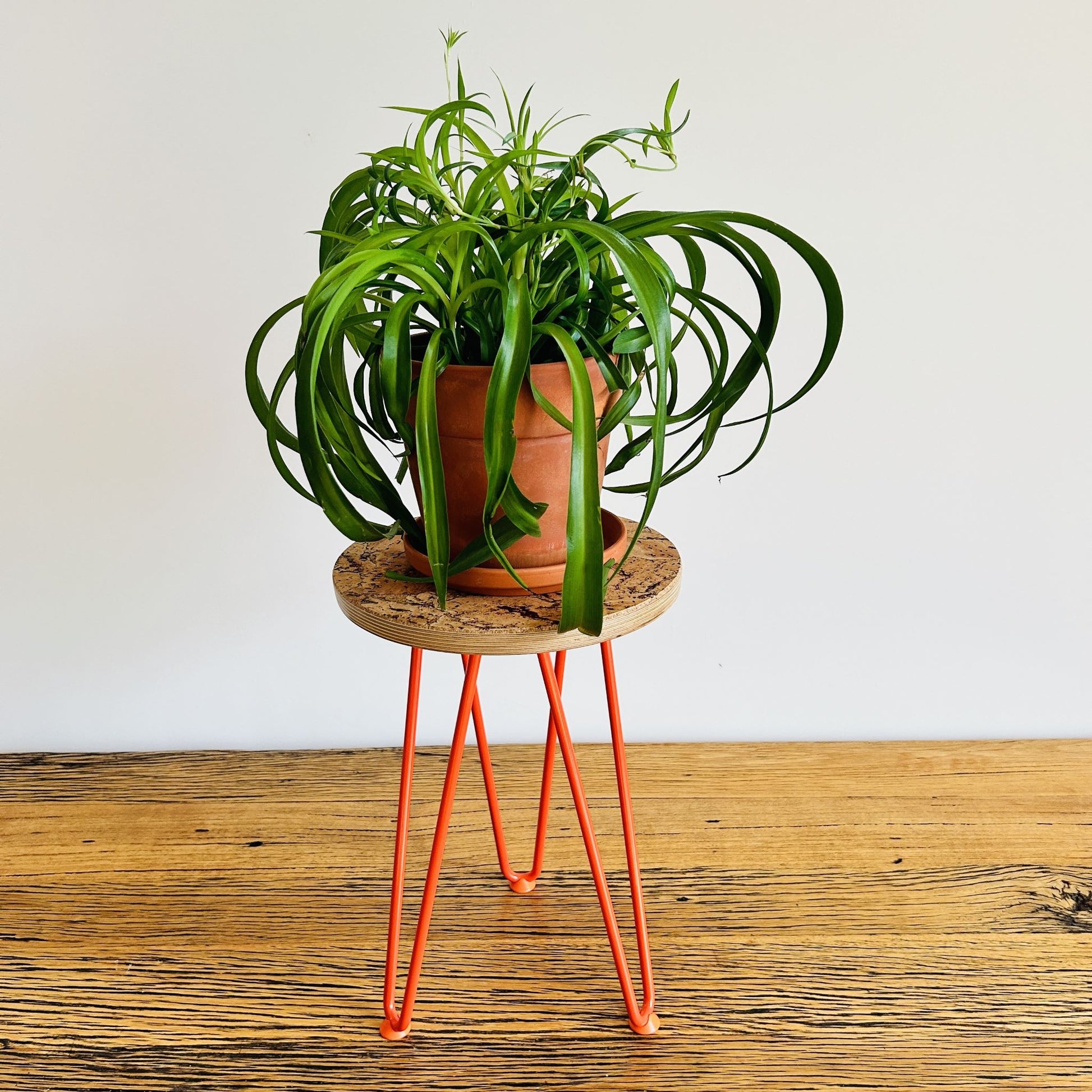 Mix and match from My range of beautiful decorative cork surfaces and boldly coloured metal hairpin legs and create your own unique plant stands. My cork finishes are sustainable, durable and stain resistant. They are applied to stylish oiled Birch plywood tops mounted on colourful hairpin legs. Whether you want them to complement or clash with your home décor, they will show off your prized plants dazzlingly.
