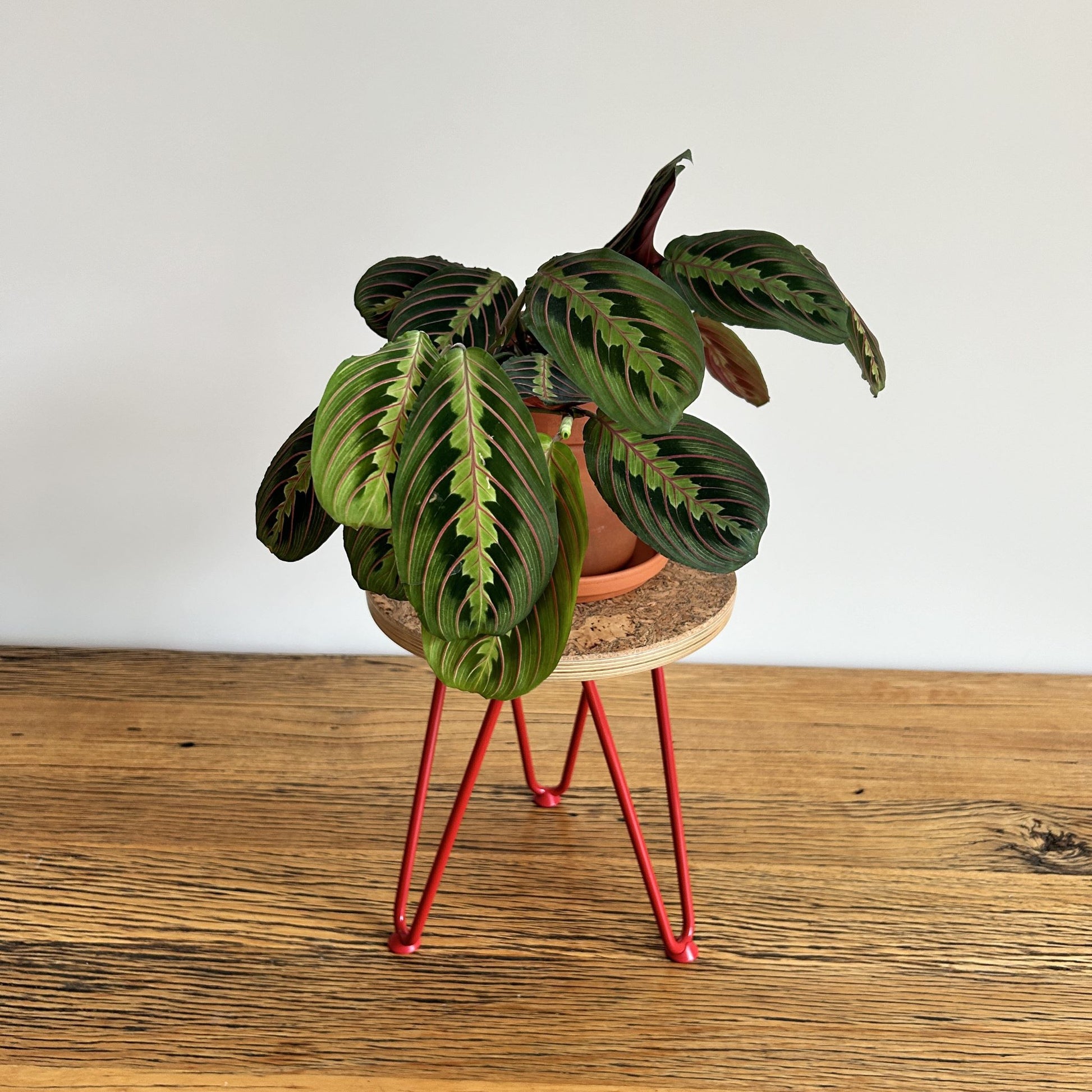 Mix and match from my range of beautiful decorative cork surfaces and boldly coloured metal hairpin legs and create your own unique plant stands. My cork finishes are sustainable, durable and stain resistant. They are applied to stylish oiled Birch plywood tops mounted on colourful hairpin legs. Whether you want them to complement or clash with your home decor, they will show off your prized plants dazzlingly.
