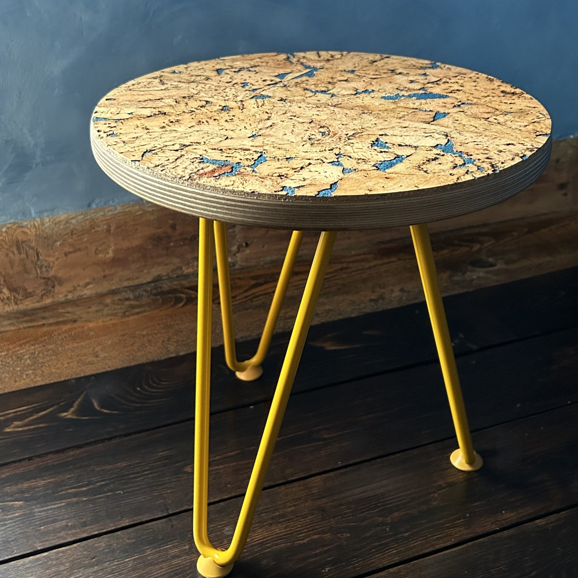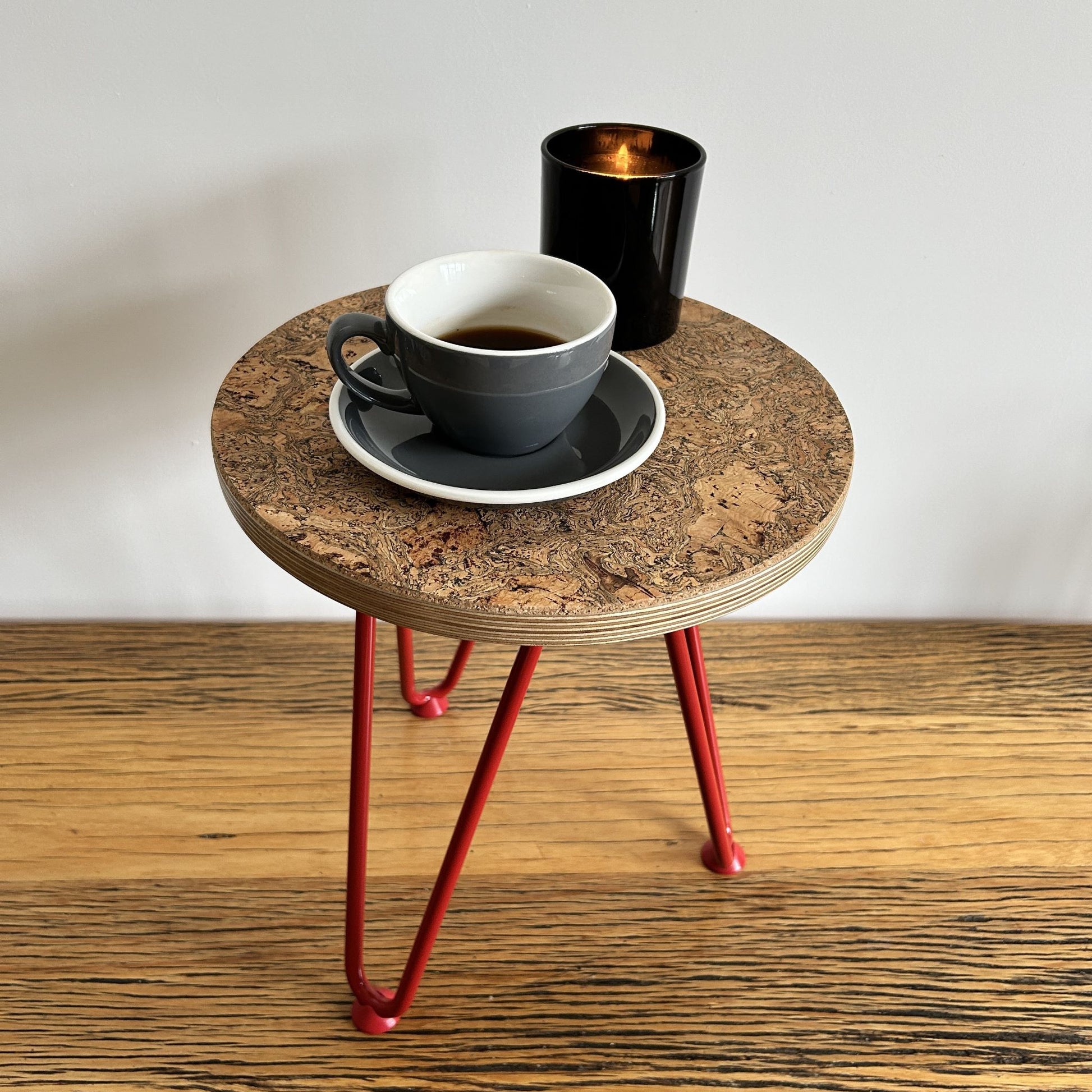 Choose from my range of sustainable, anti-bacterial, and stain-resistant cork options and brightly coloured legs. Each table is handcrafted and unique. The Minimalist Side Tables will give your living room a pop of bold colour; while being petite, versatile, and perfect for those tricky spaces.