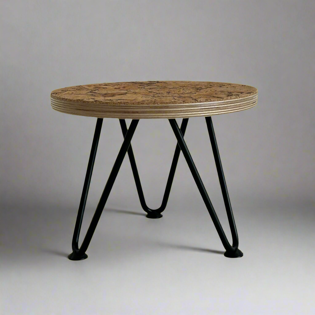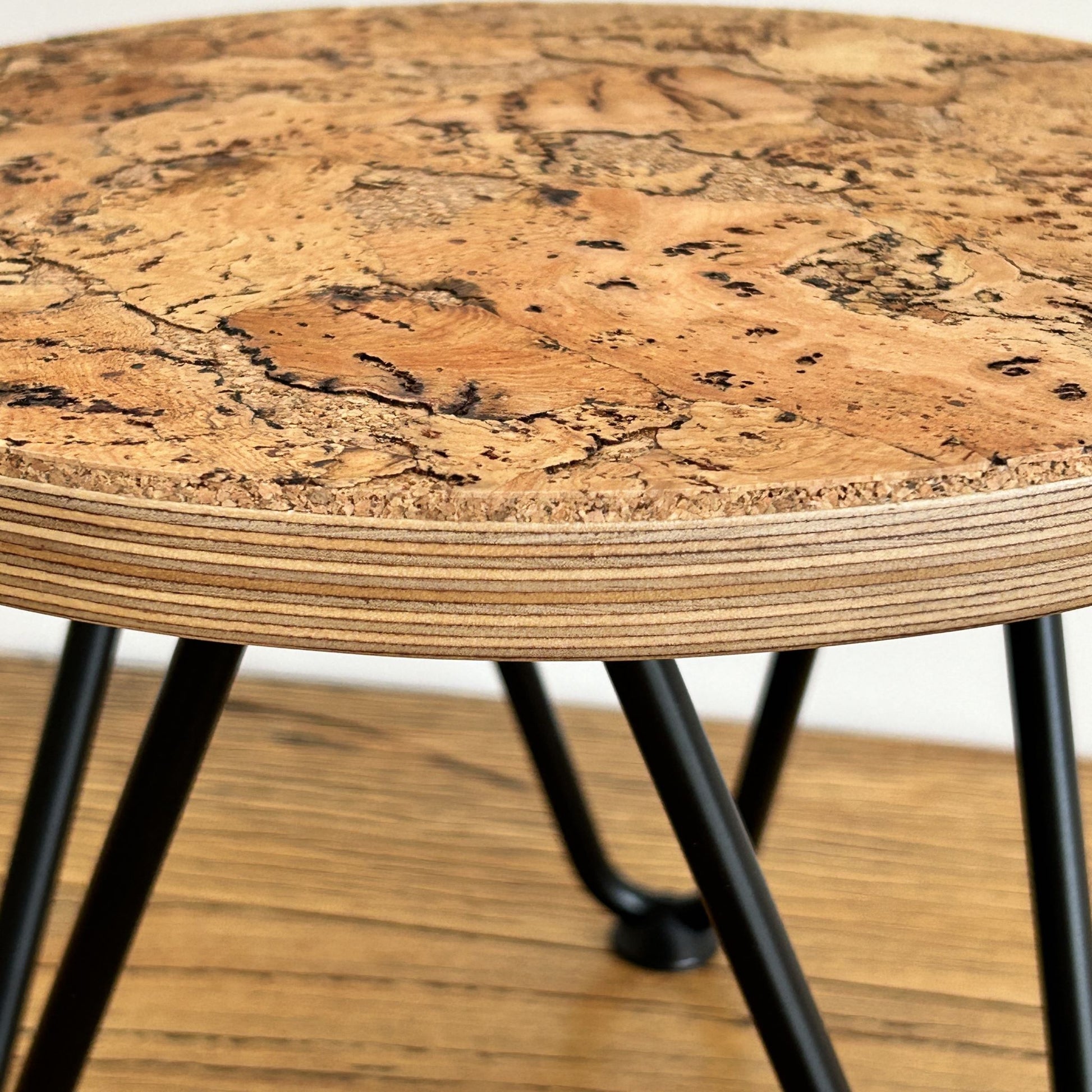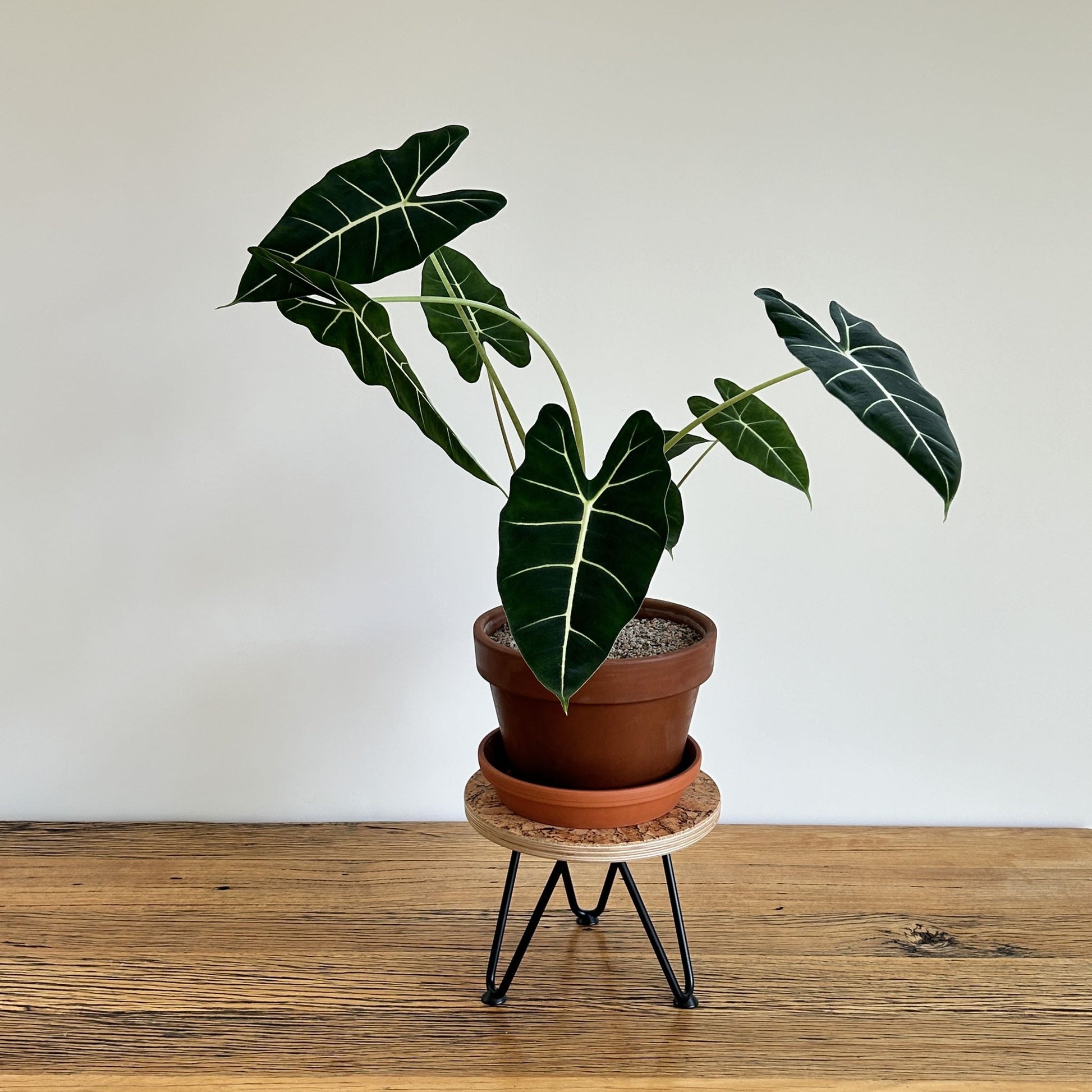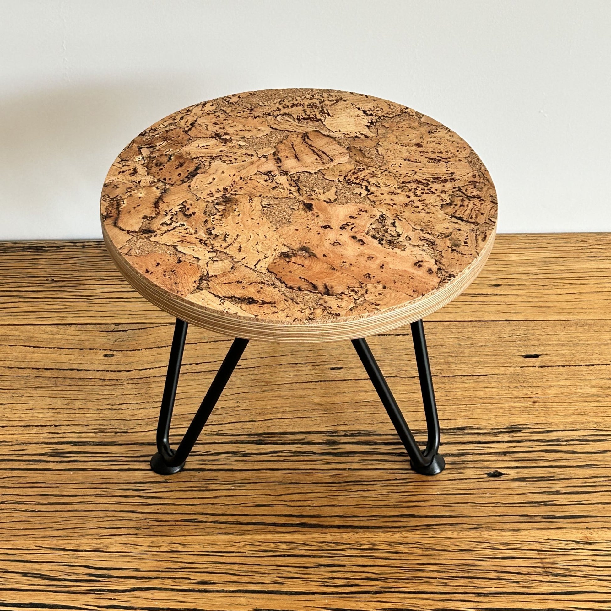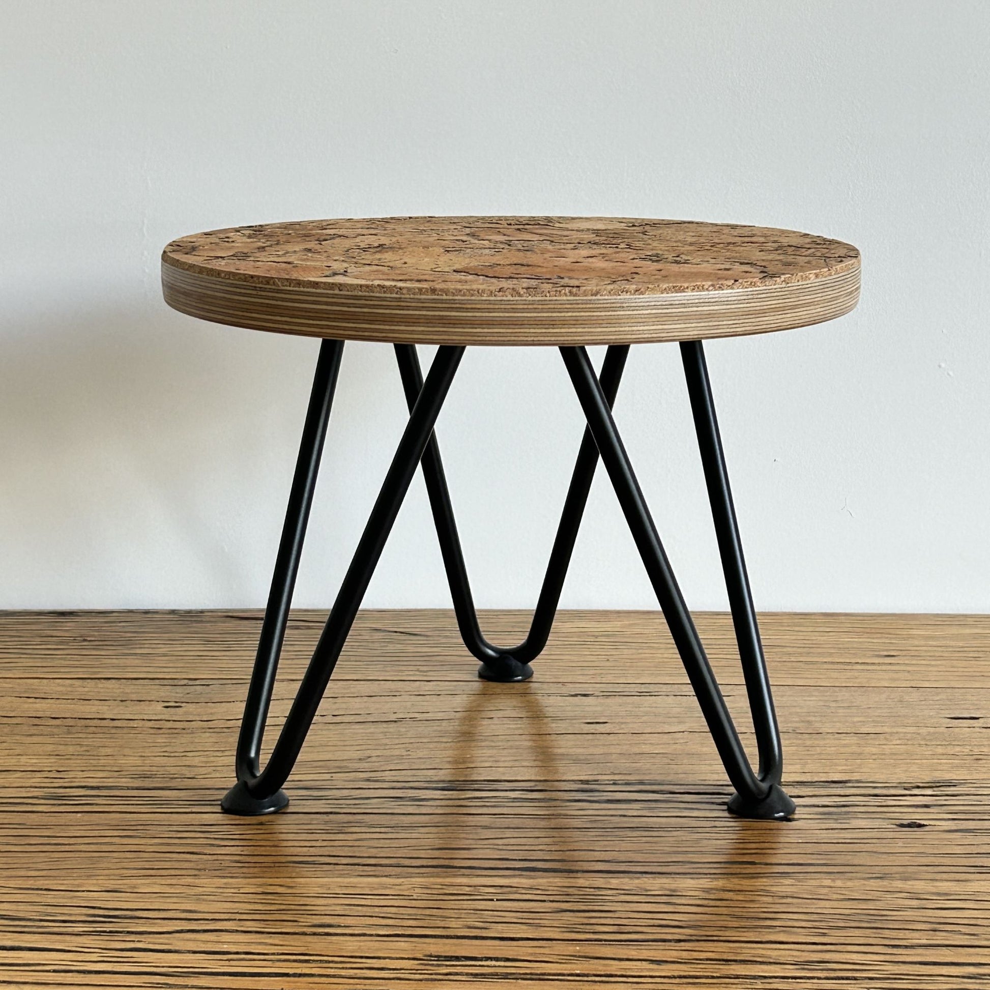 The Minimalist Black Leg plant stand has a beautiful decorative cork surface that is sustainable, durable and stain resistant. It's applied to a stylish oiled Birch plywood top and mounted on sturdy black metal hairpin legs. These stands work seamlessly with any interior style and will show off your prized plants in their best light.